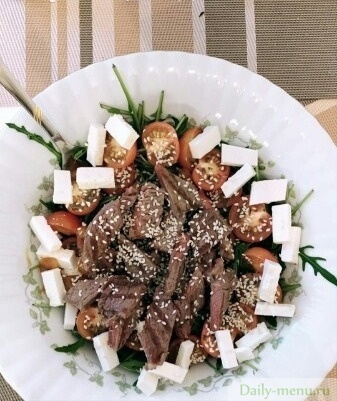 Салат из рукколы,говядины и брынзы