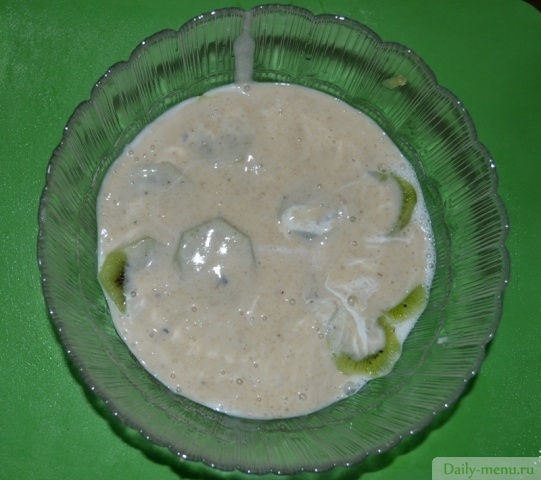 банан, киви, сметана 10,0% жирности, печенье крекер, сахарная пудра, кокосовая стружка
