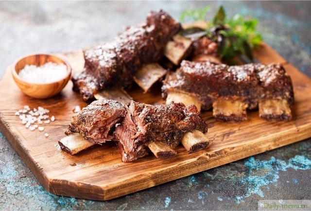 ребра говяжьи, масло топленое, соль поваренная пищевая, розмарин, паприка сушёная, молотая, чеснок сушеный, лук репчатый, сушеный, перец черный молотый, перец белый, тимьян