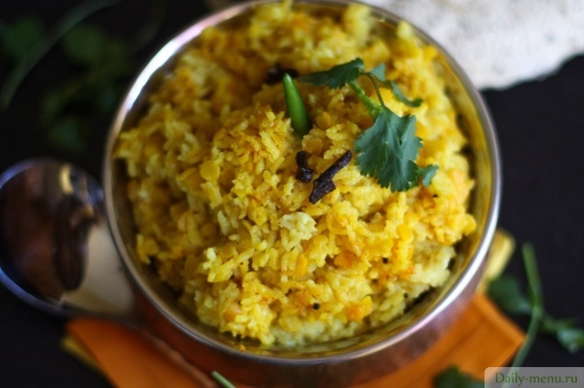 рис бурый, чечевица красная, рис длиннозёрный, топленое масло гхи, соль поваренная пищевая, зира (кумин), черный тмин, гвоздика, карри, кардамон, лавровый лист, перец душистый