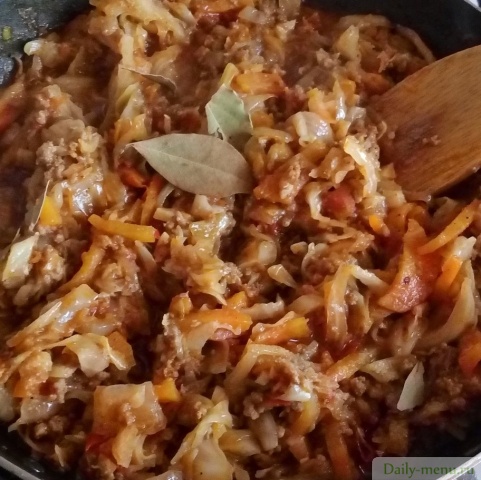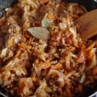 капуста белокочанная, колбаса полукопченая краковская, морковь, лук репчатый, масло подсолнечное, томатная паста
