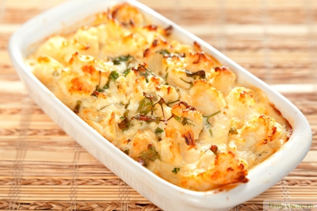 капуста цветная, сыр маскарпоне, сливки 30% жирности, сыр пармезан, мука пшеничная , масло сливочное 72%, соль поваренная пищевая, перец черный молотый, тимьян