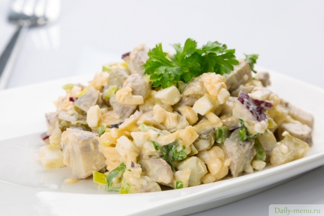 Салат с солеными огурчиками и грибами