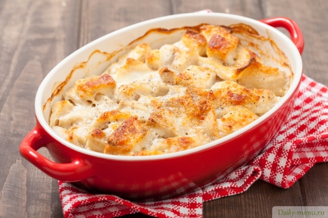 минтай, сметана 20,0% жирности, лук репчатый, соевый соус, масло сливочное 72%, перец черный молотый
