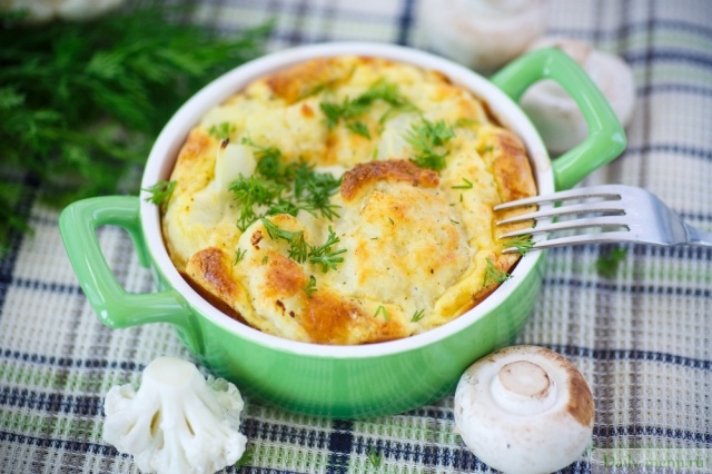 капуста цветная, яйцо куриное, сыр сулугуни, сметана 20,0% жирности, молоко 2,5% , масло сливочное 72%, соль поваренная пищевая, прованские травы