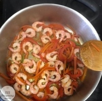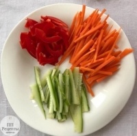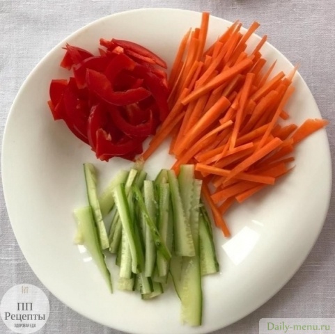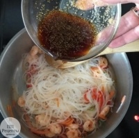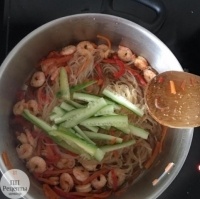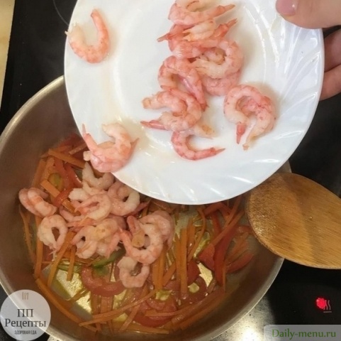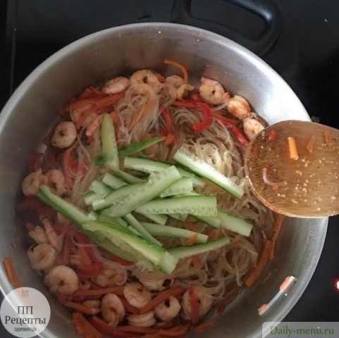 вода, креветки очищенные, лапша фунчоза, перец болгарский красный, морковь, огурец грунтовый, мед натуральный (мёд), соевый соус, сок лимонный, масло подсолнечное, чеснок, кунжут-семя
