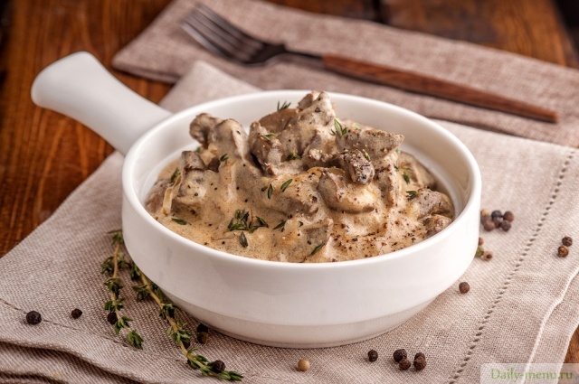 шея свиная, вода, сметана 20,0% жирности, лук репчатый, масло оливковое, чеснок, соль поваренная пищевая, тимьян, перец черный молотый