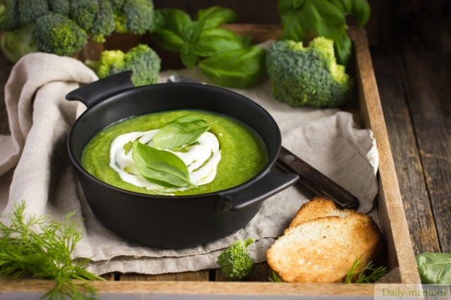 говяжий бульон, брокколи, капуста цветная, сливки 30% жирности, морковь, лук репчатый, масло оливковое, соль поваренная пищевая, перец черный молотый