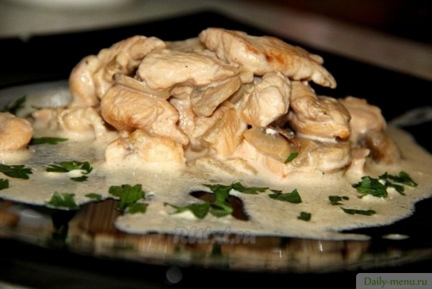 филе индейки, лук репчатый, сметана 15,0% жирности, соевый соус, чеснок, соль поваренная пищевая, перец черный молотый