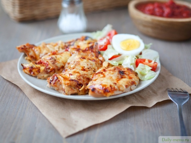 курица филе, без кожи, сметана 20,0% жирности, огурец соленый, помидоры, сыр эдам, соль поваренная пищевая, перец черный молотый