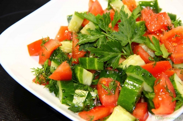огурец грунтовый, помидоры, петрушка, масло оливковое, соль поваренная пищевая