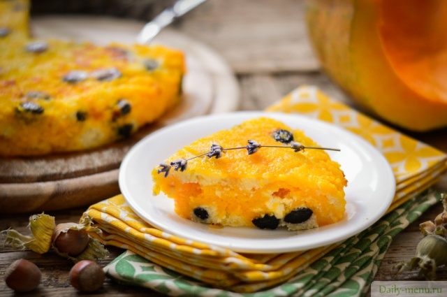тыква, творог, 9 %, яйцо куриное, изюм кишмиш, курага, сахар-песок, масло сливочное 72%, корица, соль поваренная пищевая