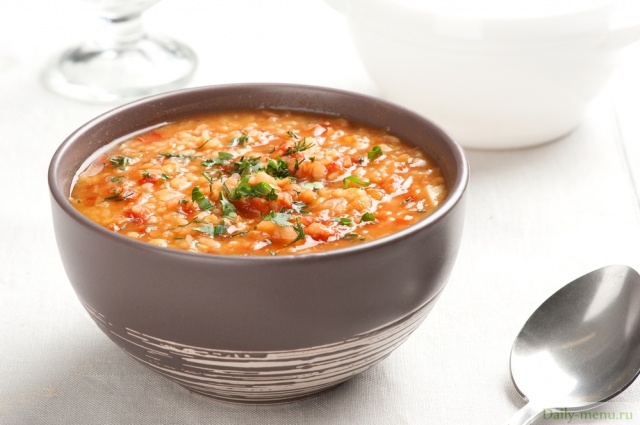 куриный бульон, помидоры, тыква, чечевица красная, сельдерей черешковый, морковь, лук репчатый, масло оливковое, чеснок, соль поваренная пищевая, прованские травы