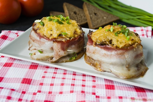 фарш из свинины, фарш из говядины, бекон, сыр творожный hochland сливочный, сыр российский, лук репчатый, яйцо куриное, перец черный молотый