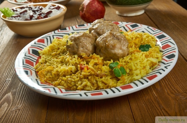 вода, фарш говядина/свинина 50/50, рис белый, лук репчатый, морковь, масло оливковое, чеснок, приправа для плова, соль поваренная пищевая