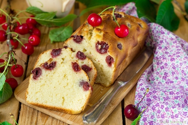 творог 18%, мука пшеничная , вишня, яйцо куриное, сахар-песок, масло сливочное 72%, разрыхлитель теста, ванильный сахар, соль поваренная пищевая