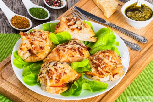 курица филе, без кожи, помидоры, сыр голландский, ветчина особая, майонез , прованские травы, перец черный молотый, соль поваренная пищевая