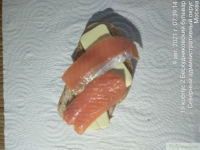форель малосольная, батон с отрубями, масло сливочное 82%