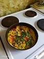 20 минут в духовку до полуготовности , добавить яйца и ещё 15 мин.