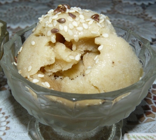 молоко 1%, сливки, 35,0% жирности, яичный желток куриный, сахар-песок, кунжут-семя