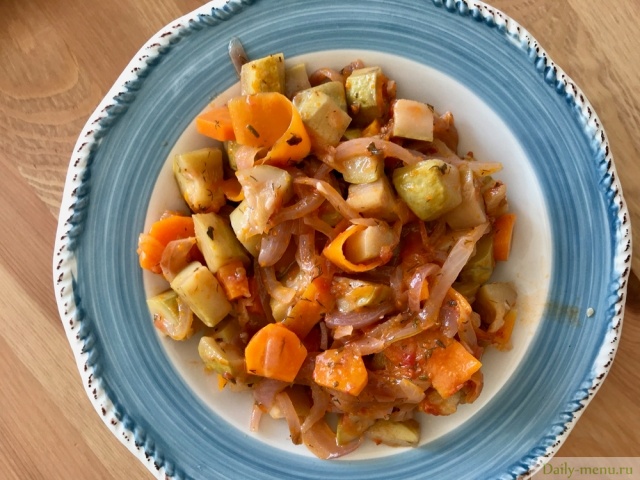 капуста белокочанная, кабачок, морковь, лук репчатый, сельдерей, корень, томатная паста, вода, масло оливковое, перец черный молотый