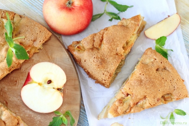 яблоки, кефир 2,5% жирности, мука пшеничная , сахар-песок, яйцо куриное, крупа манная, масло сливочное 72%, соль поваренная пищевая, пищевая сода, корица
