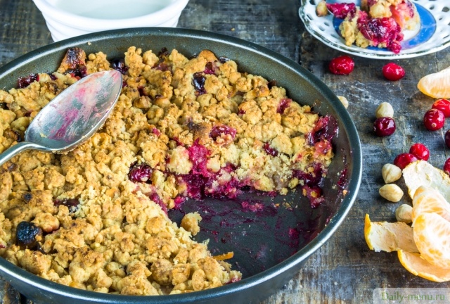 яблоки, клюква, овсяные хлопья геркулес, масло сливочное 72%, мука пшеничная , мед натуральный (мёд), корица