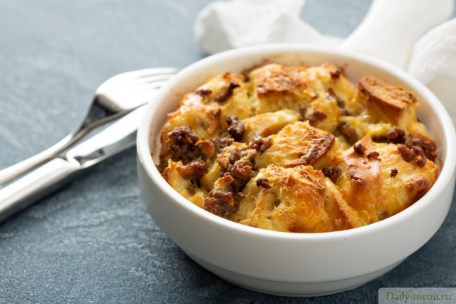 фарш говядина/свинина 50/50, хлеб ржаной, сметана 18% жирности, яйцо куриное, сыр гауда, лук репчатый, масло оливковое, масло сливочное 72%, чеснок, перец черный молотый, соль поваренная пищевая