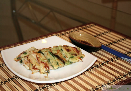 молоко 0.5%, вода, мука пшеничная , яйцо куриное, масло подсолнечное, яичный желток куриный, лук зеленый, соль поваренная пищевая