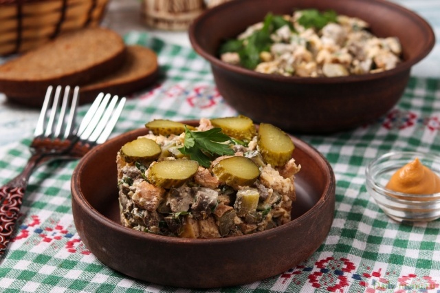 печень куриная, огурец соленый, яйцо куриное, майонез , сыр костромской, чеснок, масло оливковое, перец черный молотый, соль поваренная пищевая