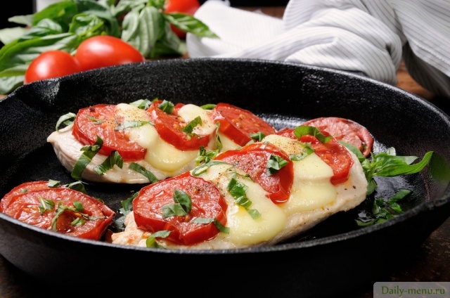 курица филе, без кожи, сыр моцарелла, масло оливковое, чеснок, базилик свежий, соль поваренная пищевая, смесь перцев