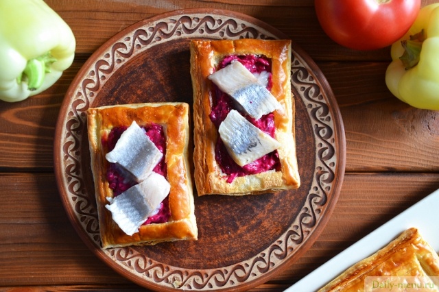 Слойки со свеклой и сельдью