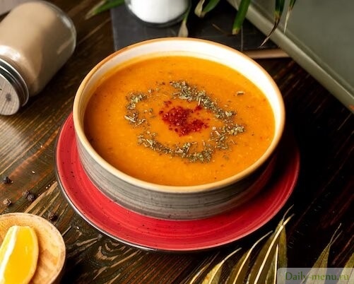 Пикантный морковный крем-суп с машем и чечевицей