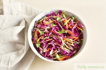 морковь, капуста белокочанная, капуста краснокочанная, петрушка, масло оливковое, яблочный уксус, соль поваренная пищевая