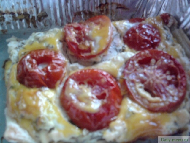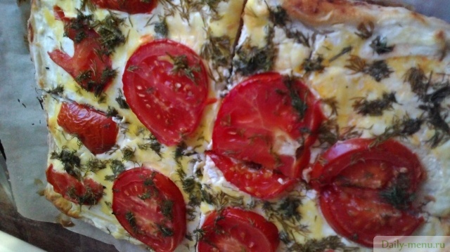 слоеное тесто бездрожжевое, творог 0.1%, помидоры, яйцо куриное, сыр плавленный шостка голландский, соль поваренная пищевая
