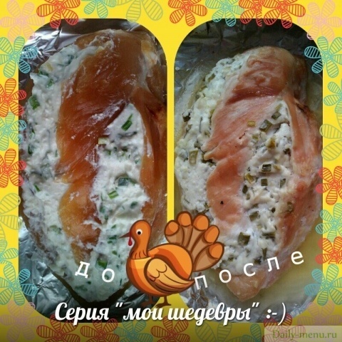 куриная грудка, без кожи, творог, 0 % , кефир 1% жирности, лук зеленый, соль поваренная пищевая, чеснок