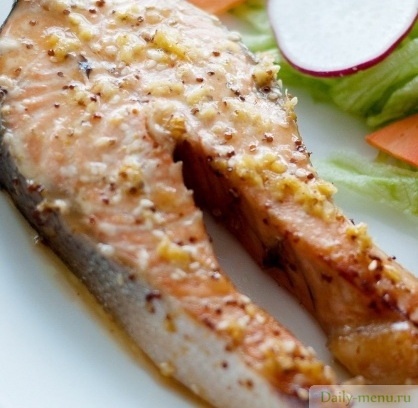 лосось атлантический (семга), сок лимонный, соевый соус, мед натуральный (мёд), имбирь корень, горчица столовая, кунжут-семя