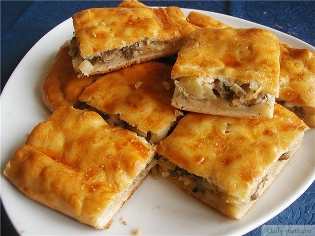 фарш куриный, слоеное тесто бездрожжевое, заморозка овощи, картофель, грибы, масло подсолнечное, яйцо куриное