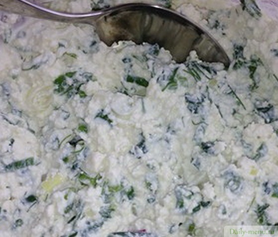 творог 0.1%, сметана 10,0% жирности, укроп и другие пряные травы, соль поваренная пищевая, перец черный молотый