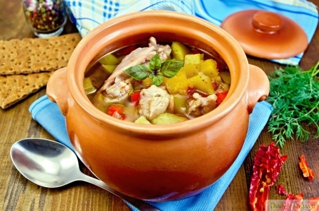 Картофель с куриным и гусиным филе в горшочках