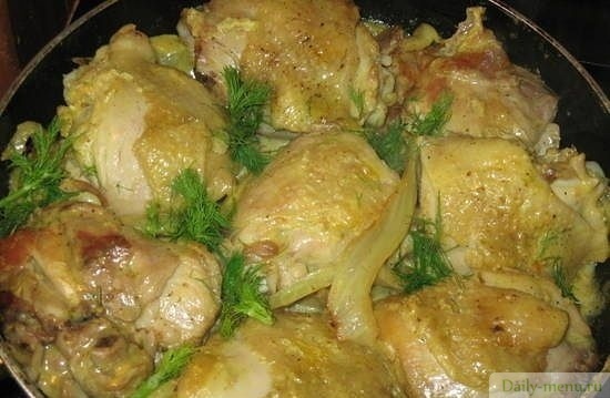 куриный окорочок, майонез , лук репчатый, соль поваренная пищевая, перец черный молотый, чеснок