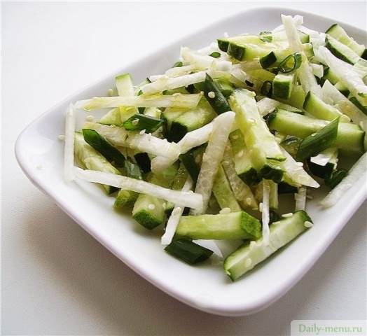 огурец грунтовый, дайкон (японская редька), кунжут-семя, масло подсолнечное