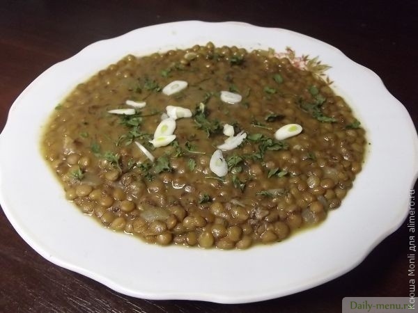 вода, чечевица зерно, укроп и другие пряные травы, масло льняное, лук зеленый, соль поваренная пищевая