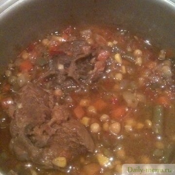 овощная смесь mexico от hortex, вода, баранина корейка мякоть, помидоры, лук репчатый, нут, масло оливковое, чеснок
