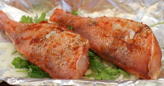 морской окунь со сметаной, запеченный в фольге