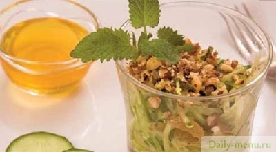 огурец грунтовый, мед натуральный (мёд), орех грецкий, изюм кишмиш, мята свежая
