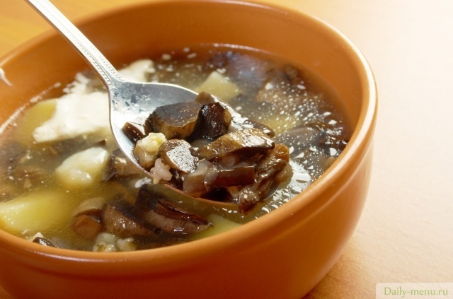бульон говяжий, вода, маслята, картофель, лук репчатый, морковь, масло подсолнечное