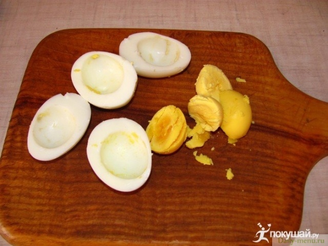 яйцо куриное крутое, майонез на перепелином яйце 67%, чеснок, соль поваренная пищевая