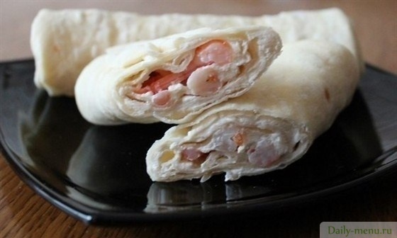 лаваш армянский, тонкий, сыр ламбер сливочный, креветки очищенные
