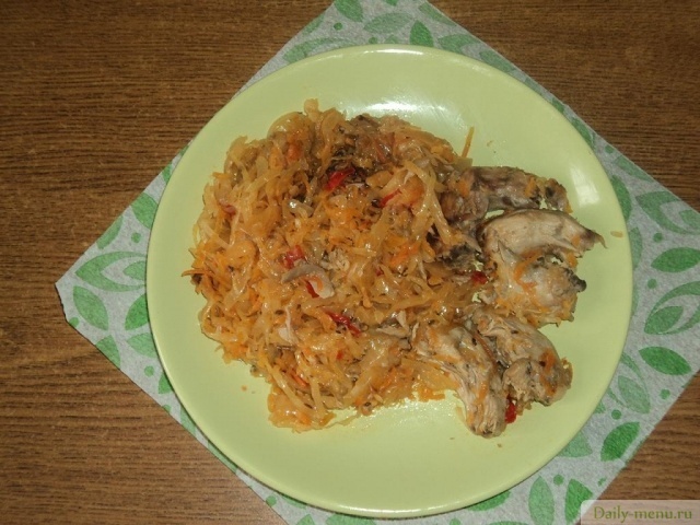 капуста квашеная, шеи куриные, лук репчатый, морковь, перец сладкий, масло подсолнечное, томатная паста